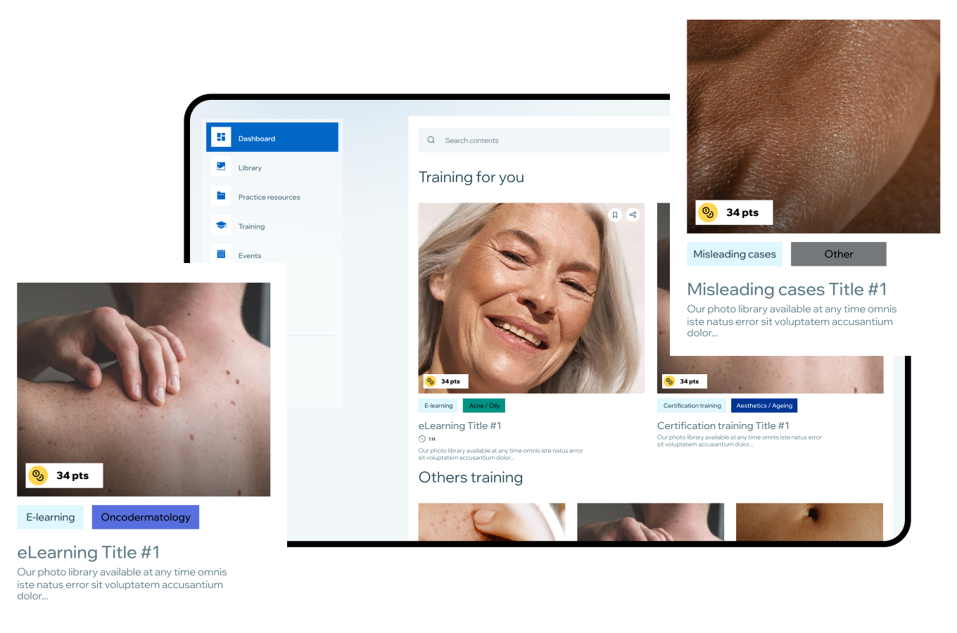 One of the largest photo library in dermatology, inherited from Professor Marc Larrègue. It is constantly enriched by the work of KOL dermatologists whom we thank for their generous contribution. Currently, we offer you 4 dermatology collections that you can consult and download freely.