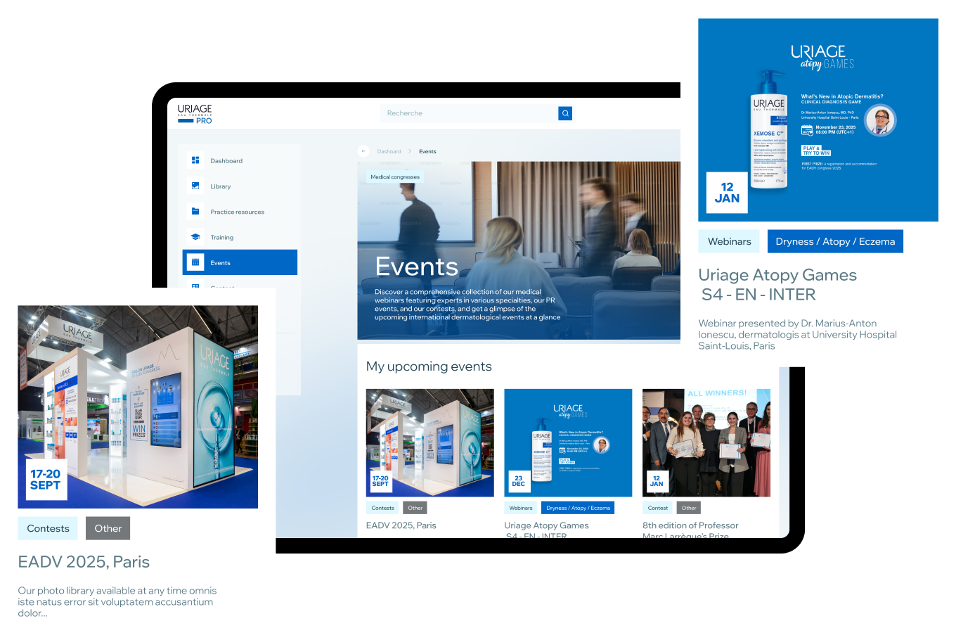 Discover a comprehensive collection of Uriage's medical webinars featuring experts in various specialties, Uriage PR events and contests, and get a glimpse of the upcoming international dermatological events at a glance